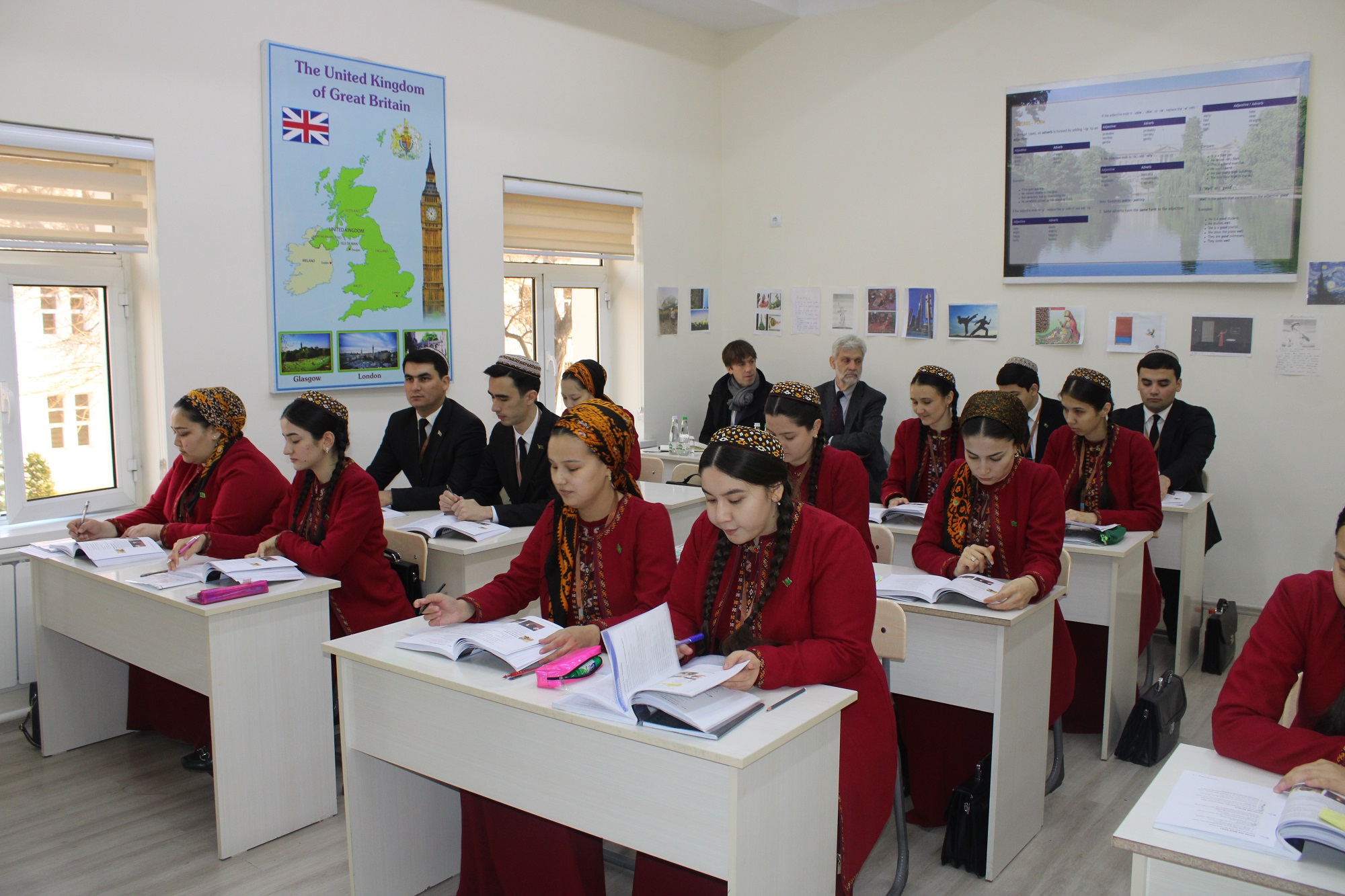 Soňra Britaniýanyň Nottingham Trent uniwersitetiniň wekilleri Iňlis dili we edebiýaty fakultetiniň taýýarlygyň pedagogika bilimi (iňlis dili) ugrynyň 116-njy toparynda “Iňlis diliniň amaly kursy” dersinden geçirilen sapaga gatnaşdylar. Bu sapagyň başynda mugallymyň talyplar bilen adamlaryň häsiýetini suratlandyrýan “Warm-up activity” geçirmegi, talyplaryň fransuz ýazyjysynyň jümlesi barada öz pikirlerini erkin beýan etmekleri olarda uly kanagatlanma döretdi. Mugallymyň sapagy okatmagyň usulyýetiniň talaplaryna laýyk guramagy hem-de talyplaryň ählisiniň sapaga işjeň çekmegi başarmagy, sapaga mugallymyň döredijilikli çemeleşmesi Britaniýanyň Nottingham Trent uniwersitetiniň wekilleri tarapyndan aýratyn bellenildi.